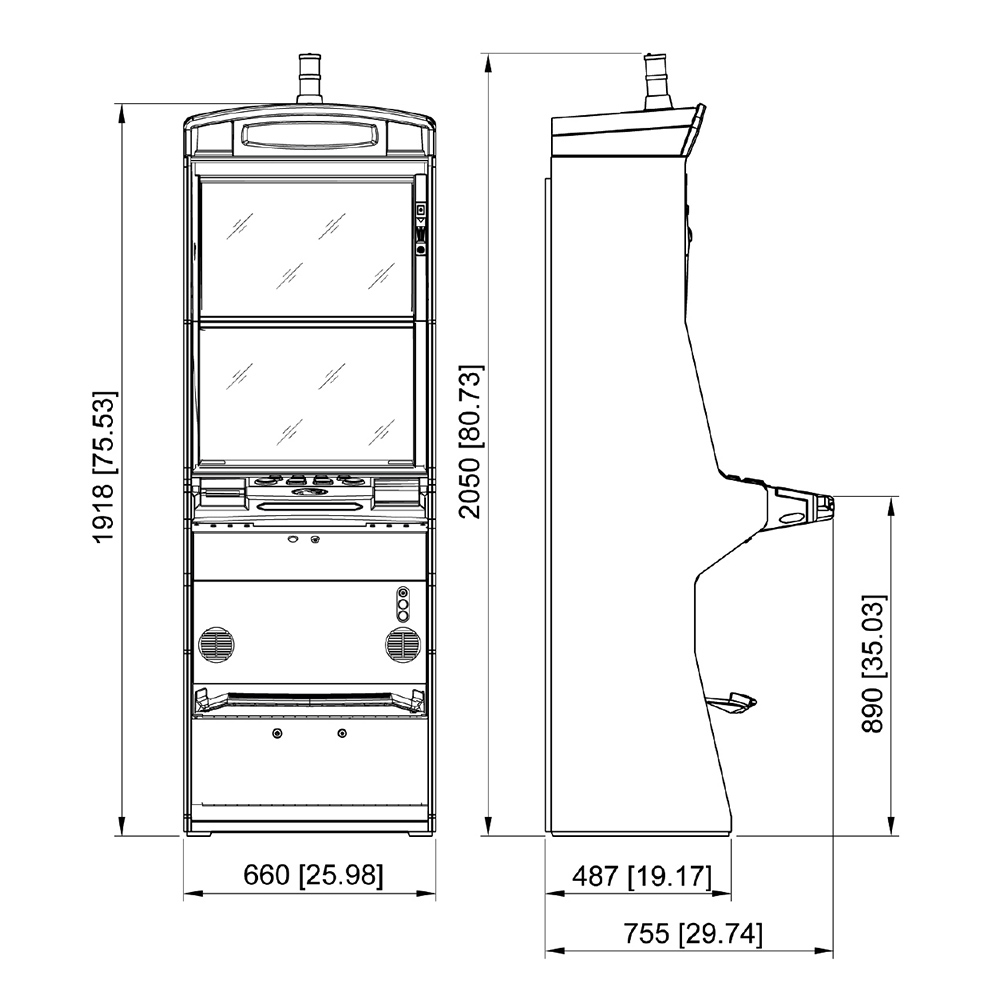 Este gabinete vertical de eficacia probada con acabado negro piano y dos monitores HD de 26″ es el centro de atención en cualquier sala de juegos. El innovador concepto de iluminación crea una apariencia sofisticada y también sirve como indicador de estado para saber si el dispositivo está en uso o no. El reciclador de billetes estándar y la gestión dinámica de efectivo facilitan la gestión del efectivo. Lo último en seguridad con la plataforma Coolfire™ II-S.